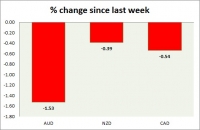 Dollar index trading at 100.70 (-0.02%) Strength meter (today so far) Aussie -0.38%, Kiwi -0.26%, Loonie +0.46% Strength meter (since last week) Aussie -0.81%, Kiwi +0.04%, Loonie -1.06% AUD/USD Trading at...