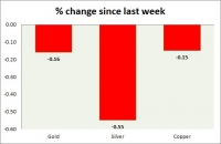 The metal pack is downtoday. Performance this week at a glance in chart table - Gold: Gold is consolidating around $1250 area, awaiting the next cue for direction. $1257 area is a key resistance. Todays range...