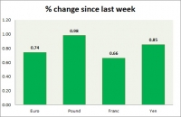Dollar index trading at 98.90 (-0.69%) Strength meter (today so far) Euro +0.74%, Franc +0.66%, Yen +0.85%, GBP +0.98% Strength meter (since last week) Euro +0.74%, Franc +0.66%, Yen +0.85%, GBP +0.98% EUR/USD...