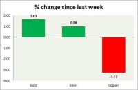 The metal pack is mixed today. Performance this week at a glance in chart table - Gold: Gold has broken the resistance around $1230 area and is racing higher on aweaker dollar and risk aversion in the stock...