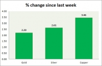 Metal pack is up today. Performance this week at a glance in chart table - Gold: Gold rose sharply as the dollar weakened from key support area above $1190 area. Todays range $1218-1234 Gold is currently...