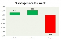 Metal pack is mixed today. Performance this week at a glance in chart table - Gold: Gold is heading higher once again as the dollar rose. Todays range $1231-1239 Gold is currently trading at $1237/troy ounce....
