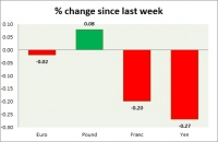 Dollar index trading at 100.77 (-0.23%) Strength meter (today so far) Euro +0.26%, Franc +0.23%, Yen +0.28%, GBP -0.35% Strength meter (since last week) Euro -0.02%, Franc -0.20%, Yen -0.27%, GBP +0.08% EUR/USD...