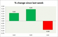 Dollar index trading at 100.75 (-0.21%) Strength meter (today so far) Aussie +0.16%, Kiwi +0.24%, Loonie -0.18% Strength meter (since last week) Aussie +0.16%, Kiwi +0.24%, Loonie -0.18% AUD/USD Trading at...