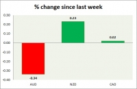 Dollar index trading at 100 (+0.27%) Strength meter (today so far) Aussie -0.34%, Kiwi +0.23%, Loonie +0.02% Strength meter (since last week) Aussie -0.34%, Kiwi +0.23%, Loonie +0.02% AUD/USD Trading at...