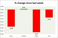 Dollar index trading at 100 (+0.27%) Strength meter (today so far) Euro -0.28%, Franc -0.37%, Yen -0.13%, GBP +0.01% Strength meter (since last week) Euro -0.28%, Franc -0.37%, Yen -0.13%, GBP +0.01% EUR/USD...