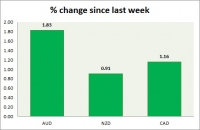 Dollar index trading at 99.34 (-0.35%) Strength meter (today so far) Aussie +1.15%, Kiwi +0.54%, Loonie +0.39% Strength meter (since last week) Aussie +1.83%, Kiwi +0.91%, Loonie +1.16% AUD/USD Trading at...