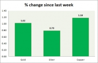 Metal pack is down today. Performance this week at a glance in chart table - Gold: Gold is up this week but likely to face selling pressure around $1200 area. Likely to slide towards $1090 per troy ounce. Todays...