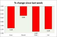Dollar index trading at 103.43 (+0.53%) Strength meter (today so far) Euro -0.64%, Franc -0.62%, Yen -0.61%, GBP -0.02% Strength meter (since last week) Euro -1.14%, Franc -1.32%, Yen -1.19%, GBP -0.49% EUR/USD...