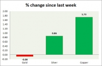 Metal pack is up today. Performance this week at a glance in chart table - Gold: Gold is marginally higher despite a stronger dollar. Likely to slide towards $1090 per troy ounce. Todays range $1159-1145 Gold...