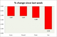 Dollar index trading at 103 (-0.10%) Strength meter (today so far) Euro +0.21%, Franc -0.02%, Yen +0.05%, GBP +0.14% Strength meter (since last week) Euro -1.07%, Franc -1.28%, Yen -2.56%, GBP -1.07% EUR/USD...