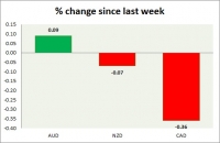 Dollar index trading at 100.3 (+0.15%) Strength meter (today so far) Aussie -0.33%, Kiwi -0.32%, Loonie -0.22% Strength meter (since last week) Aussie +0.09%, Kiwi -0.07%, Loonie -0.36% AUD/USD Trading at...
