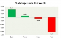 Dollar index trading at 100.53 (-0.8%) Strength meter (today so far) Euro +0.44%, Franc -0.08%, Yen -0.84%, GBP +0.08% Strength meter (since last week) Euro +0.44%, Franc -0.08%, Yen -0.84%, GBP +0.08% EUR/USD...