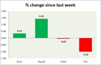 Dollar index trading at 101.18 (-0.34%) Strength meter (today so far) Euro +0.33%, Franc +0.34%, Yen +0.33%, GBP +1.07% Strength meter (since last week) Euro +0.33%, Franc -0.05%, Yen -1.01%, GBP +1.42% EUR/USD...