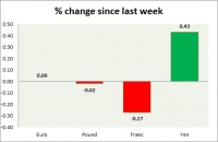 Dollar index trading at 101.32 (+0.16%) Strength meter (today so far) Euro -0.16%, Franc -0.25%, Yen -0.88%, GBP +0.62% Strength meter (since last week) Euro +0.00%, Franc -0.27%, Yen +0.43%, GBP -0.02% EUR/USD...
