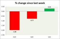 Dollar index trading at 100.96 (-0.03%) Strength meter (today so far) Aussie -0.11%, Kiwi +0.42%, Loonie +0.28% Strength meter (since last week) Aussie -1.98%, Kiwi -0.77%, Loonie +0.30% AUD/USD Trading at...