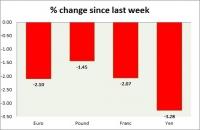 Dollar index trading at 100.02 (-0.23%) Strength meter (today so far) Euro +0.02%, Franc +0.02%, Yen +0.15%, GBP -0.08% Strength meter (since last week) Euro -2.10%, Franc -2.07%, Yen -3.28%, GBP -1.45% EUR/USD...