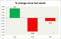 Dollar index trading at 98.85 (+0.25%) Strength meter (today so far) Aussie +0.83%, Kiwi -0.48%, Loonie -0.14% Strength meter (since last week) Aussie +0.67%, Kiwi -0.96%, Loonie -0.22% AUD/USD Trading at...
