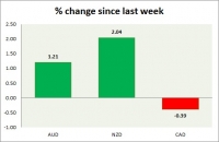Dollar index trading at 97.15 (-0.02%) Strength meter (today so far) Aussie -0.16%, Kiwi -0.29%, Loonie -0.40% Strength meter (since last week) Aussie +1.21%, Kiwi +2.04%, Loonie -0.39% AUD/USD Trading at...