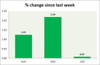 Dollar index trading at 97.28 (-0.09%) Strength meter (today so far) Aussie +0.31%, Kiwi +0.43%, Loonie +0.05% Strength meter (since last week) Aussie +1.24%, Kiwi +2.18%, Loonie +0.07% AUD/USD Trading at...