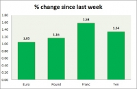 Dollar index trading at 97.43 (-0.35%) Strength meter (today so far) Euro +0.39%, Franc +0.46%, Yen +0.76%, GBP +0.68% Strength meter (since last week) Euro +1.05%, Franc +1.58%, Yen 1.34%, GBP +1.16% EUR/USD...
