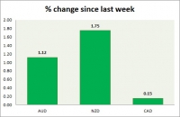 Dollar index trading at 97.31 (-0.35%) Strength meter (today so far) Aussie +0.26%, Kiwi +1.12%, Loonie +0.20% Strength meter (since last week) Aussie +1.12%, Kiwi +1.75%, Loonie +0.15% AUD/USD Trading at...