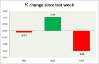 Dollar index trading at 98.69 (+0.37%) Strength meter (today so far) Aussie -0.40%, Kiwi -0.45%, Loonie -0.76% Strength meter (since last week) Aussie -0.12%, Kiwi +1.03%, Loonie -1.52% AUD/USD Trading at...