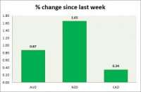 Dollar index trading at 97.76 (-0.13%) Strength meter (today so far) Aussie +0.04%, Kiwi -0.10%, Loonie -0.19% Strength meter (since last week) Aussie +0.87%, Kiwi +1.65%, Loonie +0.34% AUD/USD Trading at...