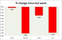 Dollar index trading at 96.05 (-0.06%) Strength meter (today so far) Euro +0.15%, Franc +0.14%, Yen -0.23%, GBP +0.04% Strength meter (since last week) Euro -0.07%, Franc -0.60%, Yen -1.78%, GBP -1.83% EUR/USD...