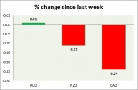 Dollar index trading at 96.19 (+0.48%) Strength meter (today so far) Aussie -0.36%, Kiwi -0.26%, Loonie -0.28% Strength meter (since last week) Aussie +0.01%, Kiwi -0.11%, Loonie -0.24% AUD/USD Trading at...