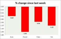 Dollar index trading at 96.18 (+0.47%) Strength meter (today so far) Euro -0.37%, Franc -0.66%, Yen -0.64%, GBP -0.75% Strength meter (since last week) Euro -0.60%, Franc -0.96%, Yen -1.20%, GBP -1.60% EUR/USD...