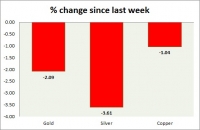 Metal pack is down today. Performance this week at a glance in chart table - Gold: Gold has broken below key support area around $1300 further downside towards $1265 area is likely. Todays range $1313-1287 We...