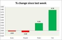 Dollar index trading at 95.97 (-0.03%) Strength meter (today so far) Euro -0.04%, Franc +0.32%, Yen +0.55%, GBP +0.06% Strength meter (since last week) Euro -0.03%, Franc +0.28%, Yen +0.78%, GBP -0.06% EUR/USD...