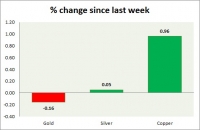 Metal pack is down today. Performance this week at a glance in chart table - Gold: Gold is down as risk aversion fades. Todays range $1322-1332 We expect gold to reach $1520 Gold is currently trading at...