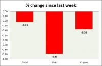 Metal pack is down today. Performance this week at a glance in chart table - Gold: Gold is down despite risk aversion in the market. Todays range $1322-1330.5 We expect gold to reach $1520 Gold is currently...