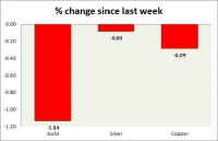 Metal pack is down today. Performance this week at a glance in chart table - Gold: Gold is down again as rate hike as the dollar move higher. Todays range $1316-1303 We expect gold to reach $1520 Gold is...