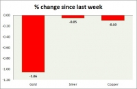 Metal pack is down today. Performance this week at a glance in chart table - Gold: Gold is down again as rate hike as both equities and the dollar move higher. Todays range $1316-1303 We expect gold to reach...