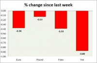 Dollar index trading at 95.99 (+0.43%) Strength meter (today so far) Euro -0.40%, Franc -0.41%, Yen -0.86%, GBP +0.01% Strength meter (since last week) Euro -0.38%, Franc -0.39%, Yen -0.88%, GBP -0.13% EUR/USD...