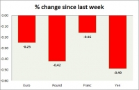 Dollar index trading at 95.74 (+0.27%) Strength meter (today so far) Euro -0.25%, Franc -0.16%, Yen -0.49%, GBP -0.42% Strength meter (since last week) Euro -0.25%, Franc -0.16%, Yen -0.49%, GBP -0.42% EUR/USD...