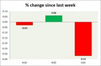 Dollar index trading at 95.74 (+0.27%) Strength meter (today so far) Aussie -0.03%, Kiwi +0.06%, Loonie -0.32% Strength meter (since last week) Aussie -0.03%, Kiwi +0.06%, Loonie -0.32% AUD/USD Trading at...