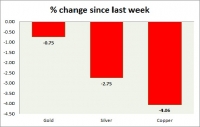 Metal pack is mixed today. Performance this week at a glance in chart table - Gold: Gold is finally getting some risk aversion bids. Todays range $1320-1333 We expect gold to reach $1520 Gold is currently...
