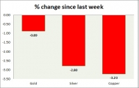 Metal pack is down today. Performance this week at a glance in chart table - Gold: Gold dropped as the dollar rebounded. Todays range $1340-1326 We expect gold to reach $1520 Gold is currently trading at...