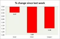 Metal pack is down today. Performance this week at a glance in chart table - Gold: Gold is down as the dollar rebounded on hawkish comments from Stanley Fischer. Todays range $1343-1331 We expect gold to reach...