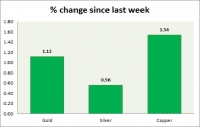 Metal pack is down today. Performance this week at a glance in chart table - Gold: Gold is marginally down today. Todays range $1346-1356 We expect gold to reach $1520 Gold is currently trading at $1351/troy...