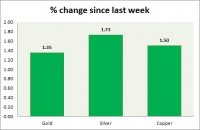 Metal pack is up today. Performance this week at a glance in chart table - Gold: Gold is higher on weaker dollar. Todays range $1339-1355 We expect gold to reach $1520 Gold is currently trading at $1354/troy...