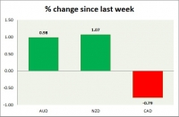 Dollar index trading at 96.97 (-0.32%) Strength meter (today so far) Aussie +0.75%, Kiwi +1.16%, Loonie -0.03% Strength meter (since last week) Aussie +0.98%, Kiwi +1.07%, Loonie -0.79% AUD/USD Trading at...