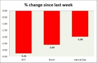 Energy pack is down in todays trading. Weekly performance at a glance in chart table. Oil (WTI) WTI is continuing its downside after last nights big drop. Active call WTI is likely to drop towards $35 area....