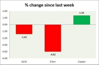 Metal pack is up today. Performance this week at a glance in chart table - Gold: Gold is only marginally higher today, trying to form a base around $1300 area. Todays range $1310-1323 We expect gold to reach...