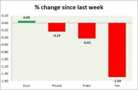 Dollar index trading at 97 (+0.46%) Strength meter (today so far) Euro -0.33%, Franc -0.30%, Yen -0.05%, GBP -0.91% Strength meter (since last week) Euro +0.05%, Franc -0.43%, Yen -1.49%, GBP -0.24% EUR/USD...