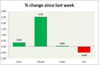 Dollar index trading at 93.64 (-0.44%) Strength meter (today so far) Euro +0.55%, Franc +0.40%, Yen +0.13%, GBP +0.29% Strength meter (since last week) Euro +0.34%, Franc +0.05%, Yen -0.49%, GBP +2.52% EUR/USD...